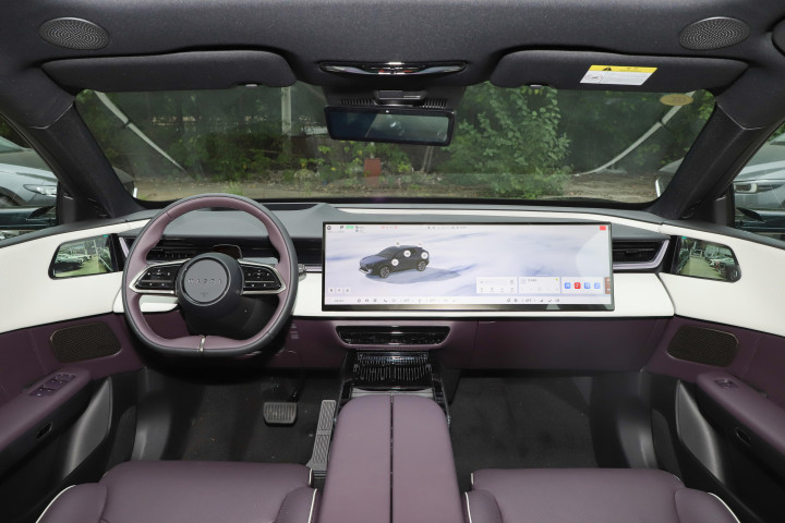 进入车内,马自达EZ-60的内饰设计采用极简风格打造,皮质多功能方向盘增添了电子式怀挡设计,在新能源领域中应用广泛,而前方的仪表盘失去独立身份,改换为26.45英寸5K一体屏设计,屏幕延伸方向朝副驾驶位置发展,主驾区间留白更多。仪表显示功能的作用融入到中控屏内,行车过程中更有50英寸标配或100英寸选配抬显设计填补,只是为了观察车况信息数据或使用导航等功能,马自达EZ-60的设计反而更为突出。